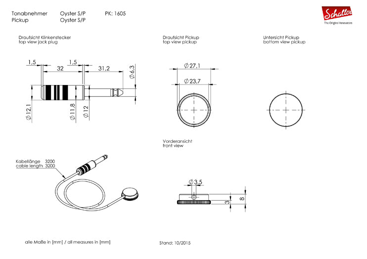 The Schaller Oyster is available in three different versions: as single (S/S or S/P) or double (D/S), whereby the two Oyster piezos of the D/S allow a wider frequency spectrum. It can be easily mounted with the included jack sockets or plugs of 6.35 mm (1/4″) diameter.