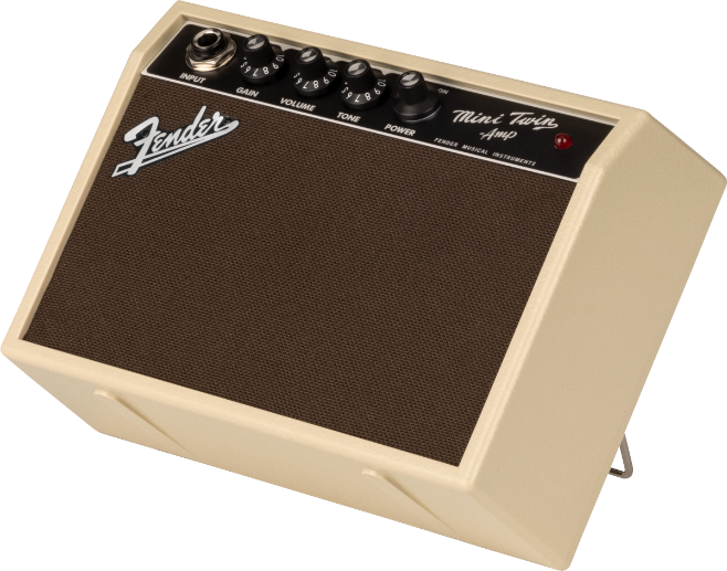 The blonde version of our Mini ’65 Twin Amp was inspired by our early 1960’s amps covered with blonde tolex. From the black control panel and miniature knobs to the oxblood grille cloth, the Fender Mini ’65 Twin Amp replicates the classic look of the full-size Twin amp. Plug in and tap into Fender style at a fraction of the size, wherever your next destination may be.