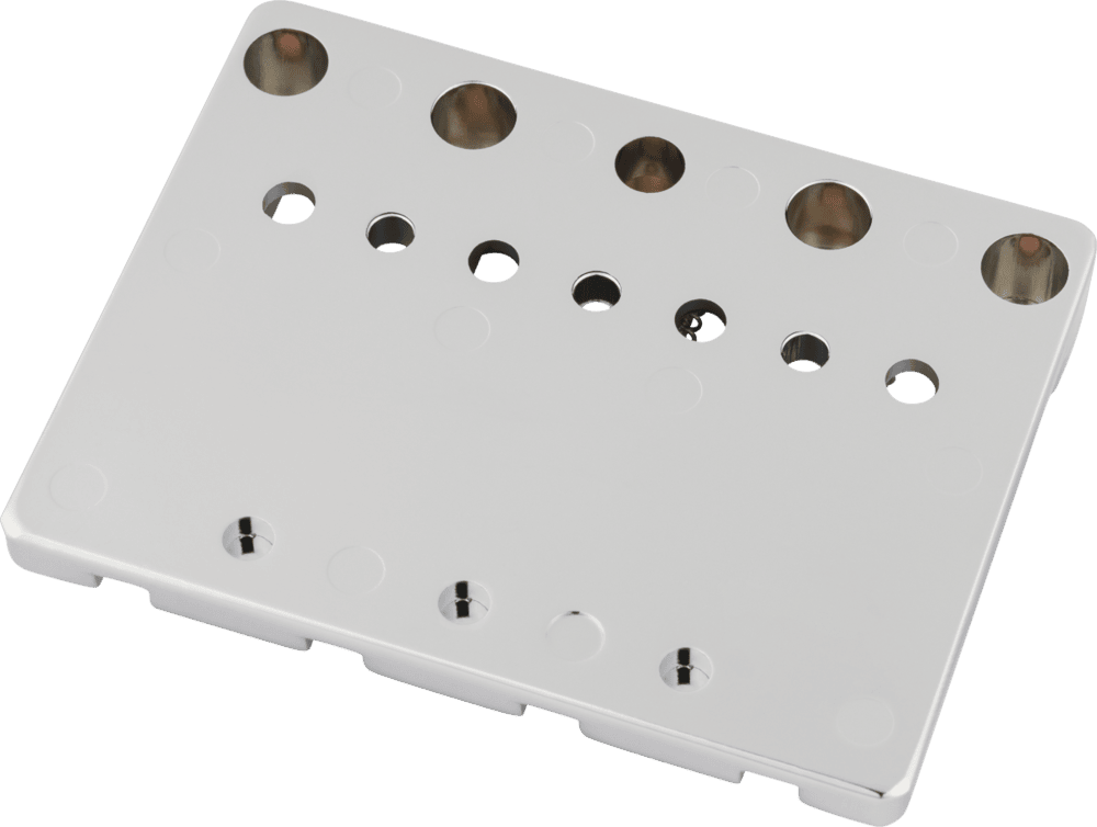 Introduced on the American Ultra II bass guitars, the precision manufactured HiMass™ bridge allows string-through or top-load operation for greater versatility with endless sustain, precise attack and rock-solid tuning stability. The brass baseplate and machined saddles impart warm, authentic vintage-style tone with .775" string spacing for a familiar playing feel. Precision engineered as a direct drop-in replacement for modern-style Fender models; this bridge mounts via three screws.