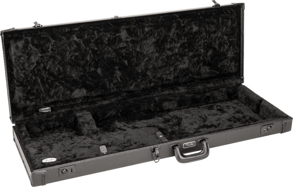 The Blackout Classic Series wood case is a stylish and dependable way to protect your Fender® electric guitar. Every part of this case has been blacked out, from the hardware to the threading to the Fender amp logo on the side. Crafted with road-reliable materials, this 3-ply hardshell wood case boasts a vinyl wrapped steel carry handle and draw latches in addition to triple chrome-plated hardware throughout the case.
