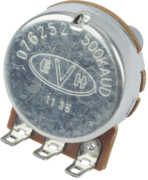 EVH low friction 500k volume pot. This highly sought after custom-spec Bourns control pot has been in use on the EVH Wolfgang guitar and is now available as an accessory. The low friction design allows for faster and more precise volume control. The 1/4" solid shaft design of the post can accommodate a variety of knobs.