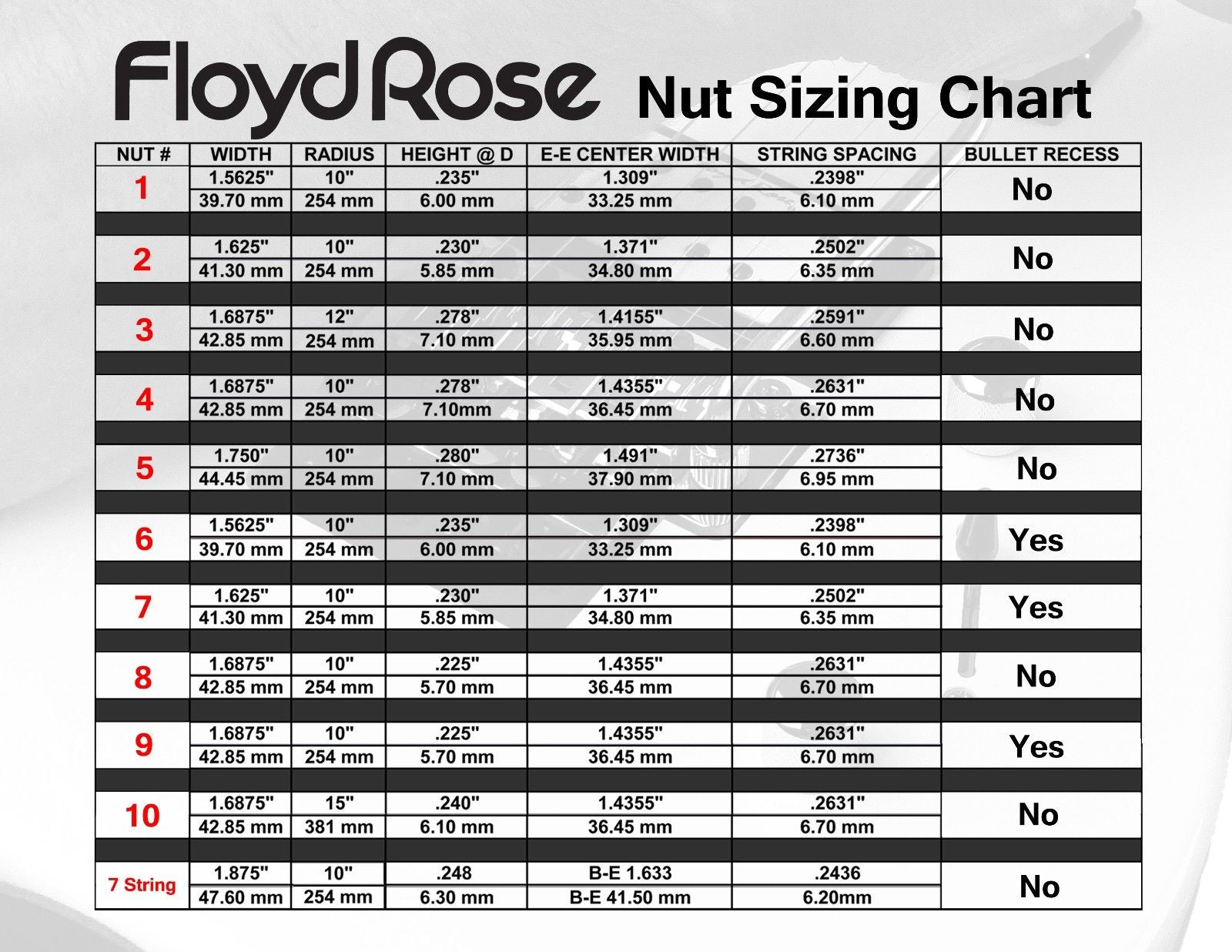 - String Spacing: .2591" (6.60 mm)