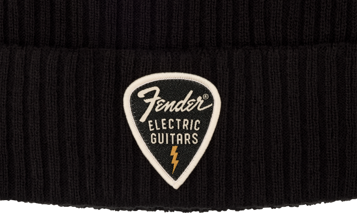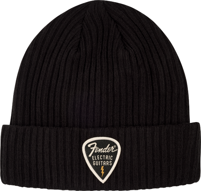 Genuine Fender Guitars Pick Patch Ribbed Beanie Hat, Black