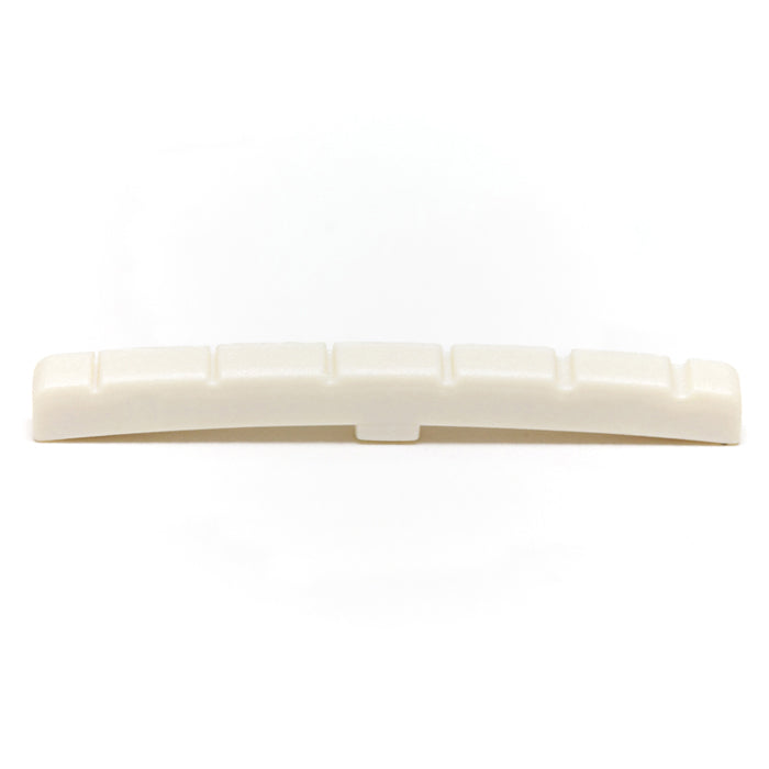 NuBone is a derivative of Graph Tech's highly resonant TUSQ material, manufactured to very close tolerances under high heat and pressure. We use specific ratios that contribute to NuBone's hardness, workability, appearance, and most importantly, guitar performance. Odorless when sanded, it is strong, outlasting and outperforming plastic. NuBone is the answer!