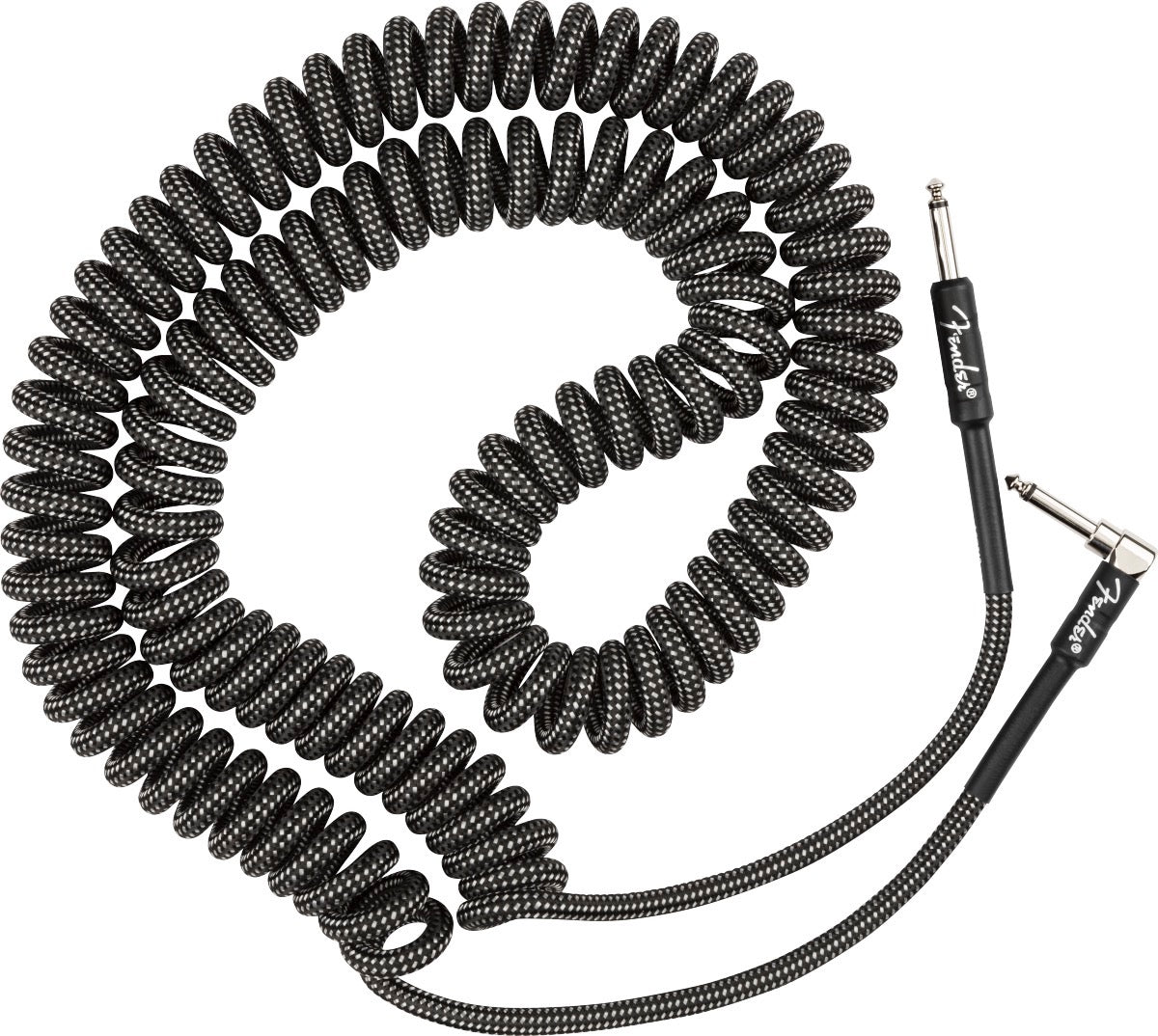 Fender Coiled Guitar/Instrument Cable, GRAY TWEED, Straight to Right-Angle 30'ft