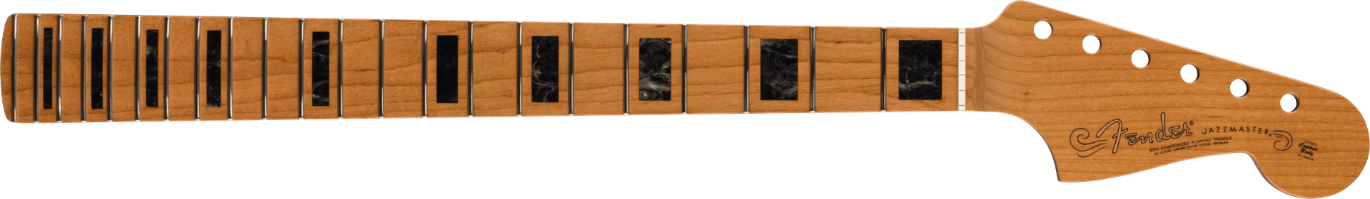 There's no denying the allure of a roasted maple neck. Resistant to humidity shifts and featuring a gorgeous, dark look, they have more sustain and add a unique note to the instrument's voice.This genuine Fender Jazzmaster neck is crafted at our Ensenada, Mexico manufacturing facility. Featuring striking pearloid block inlays, a Modern "C" neck profile and 9.5"-radius maple fingerboard with 22 medium jumbo frets for modern playing feel. The synthetic bone nut is pre-slotted with "pilot" grooves for accurate spacing when filing the final string slots.