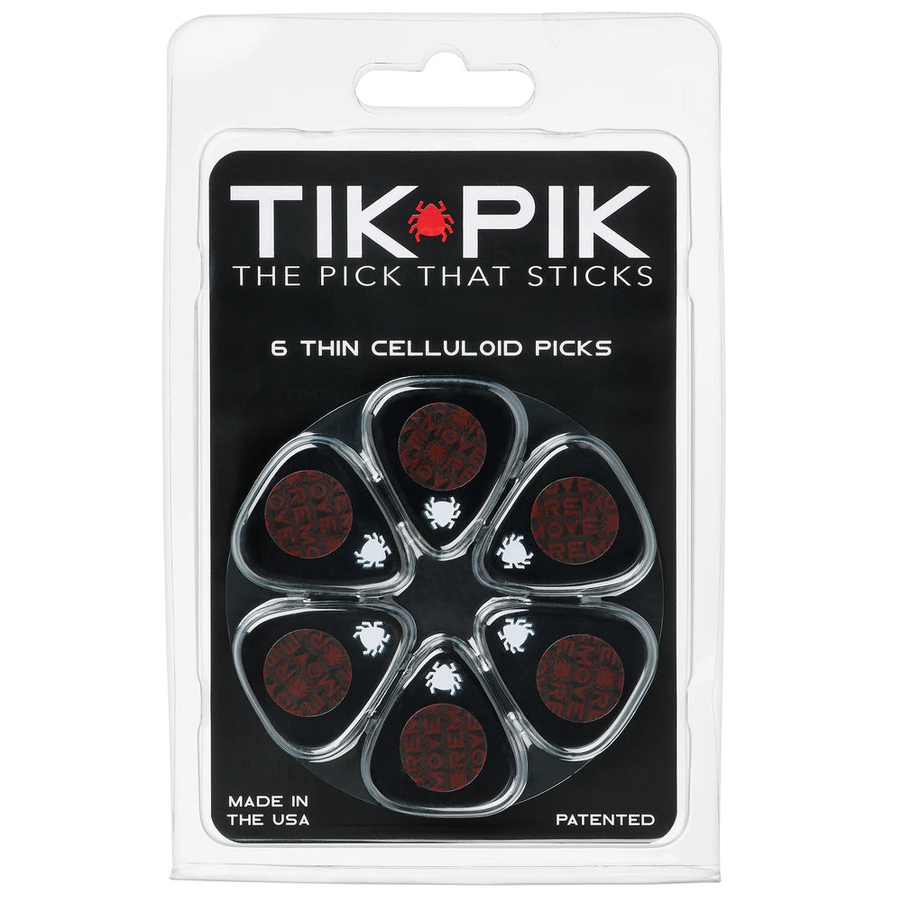 TIK PIK USA Stick-On Celluloid Guitar Picks, Black, 6-Pack, THIN