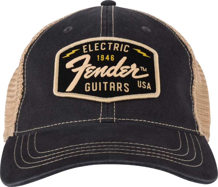 Genuine Fender Transition Logo Patch Hat, Black/Stone, One Size