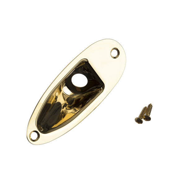 Gold jack ferrule plate used on most import models. Also used on Deluxe Player Strat (Mexico).