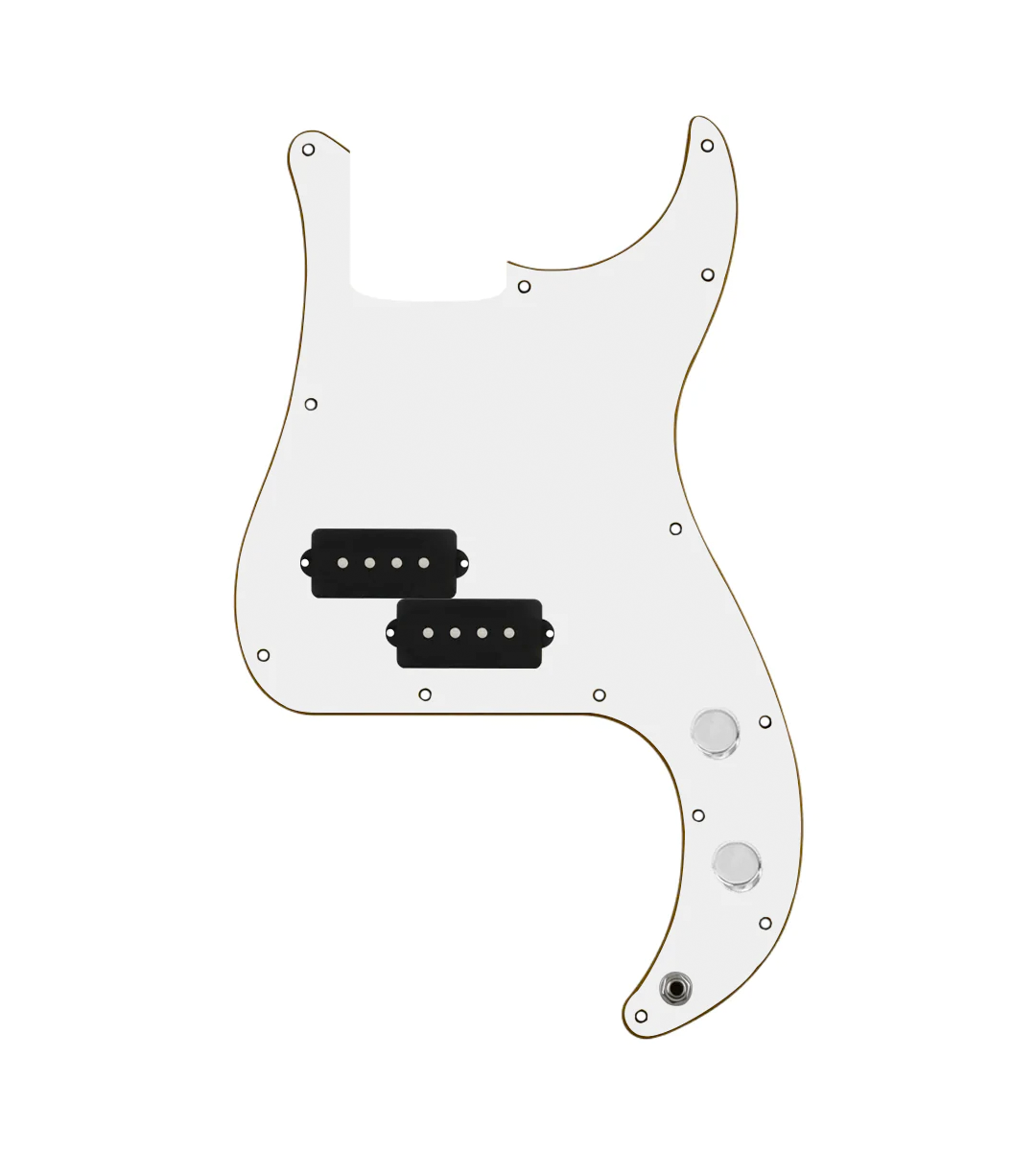 Our Loaded Pickguard for Precision Basses has everything you need to give your bass a massive upgrade. Everything - including the pickups - is pre-wired and ready to go. A short while after you get the package in the mail, your bass will sound better than it ever has. Components: 2 - 920D Custom Bass Pickups 920D PB wiring Custom Pickguard 2 - Chrome Knurled Knobs Input Jack