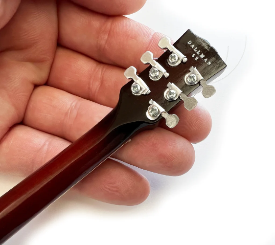 The original 1959 Les Paul standard tobacco burst was purchased by Duane in June of 1971 & used in the final months of his life. The axe nicknamed 'Hot Lanta' is heard on the live recordings from the closing of the Fillmore East concert on June 27, 1971, some of which was released on the deluxe edition of the band's Eat A Peach LP. Duane also played it on the Live from A&R Studios in New York, August 26, 1971, a radio broadcast which was later officially released as well. After Duane’s death, ABB roadie Twiggs Lyndon changed out the frets & had the original frets mounted on the back with the name ‘DUANE’ spelled out. AXE HEAVEN® is the originator of handcrafted miniature guitars. Now, we are recreating the same Gibson high level of craft and quality in each miniature. This miniature replica model honors the Holy Grail of electric guitars. The stain on this handcrafted collectible is an amazing reproduction of the original solid body instrument.