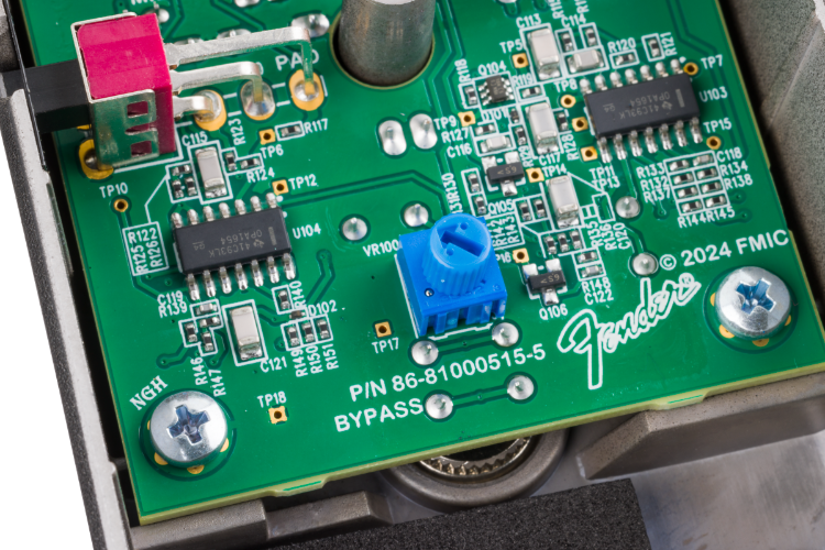 - Inset aluminum face plate draws in vintage Fender aesthetics