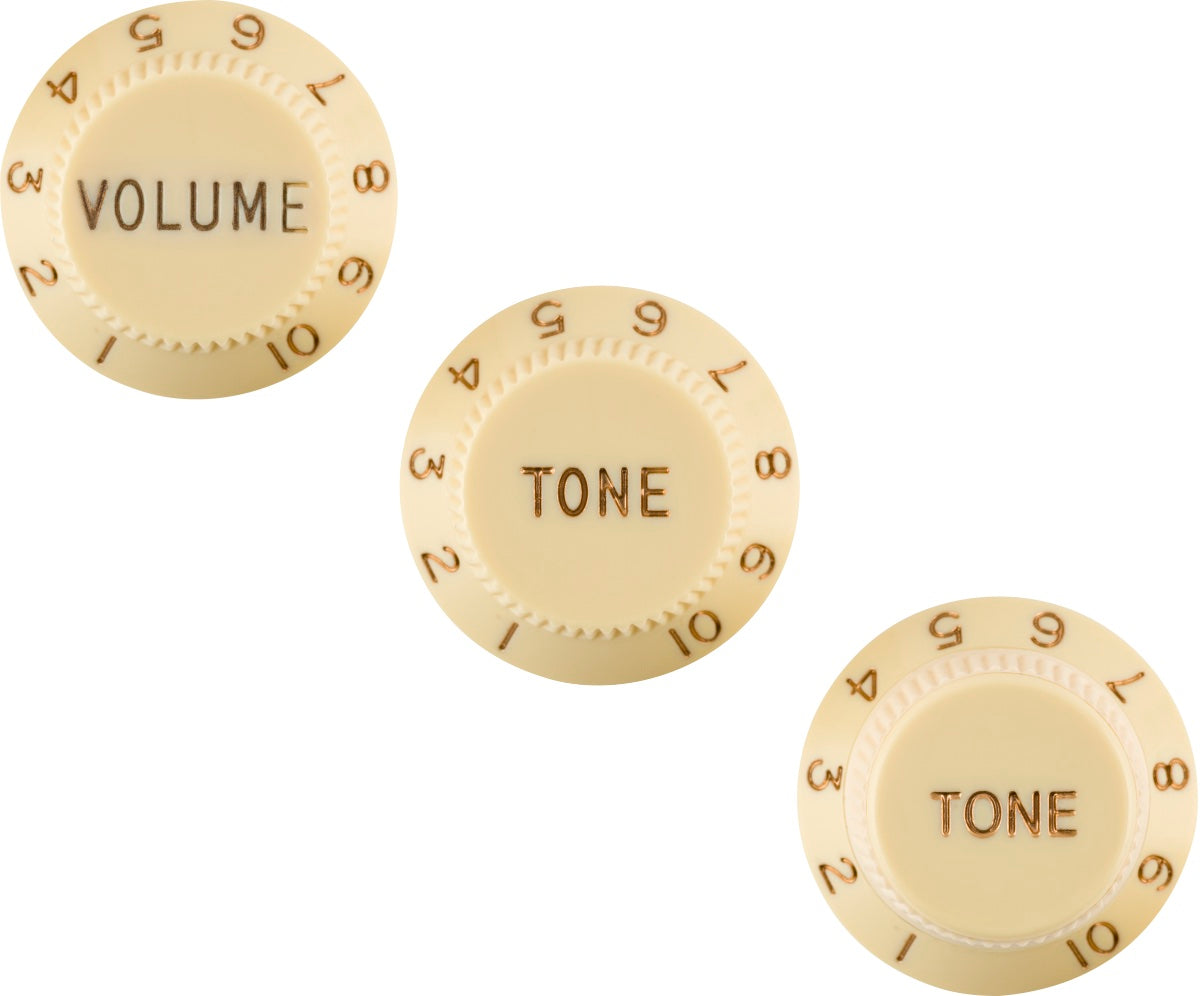 Genuine Fender LEFT-HANDED Stratocaster/Strat Guitar Control Knobs, AGED WHITE