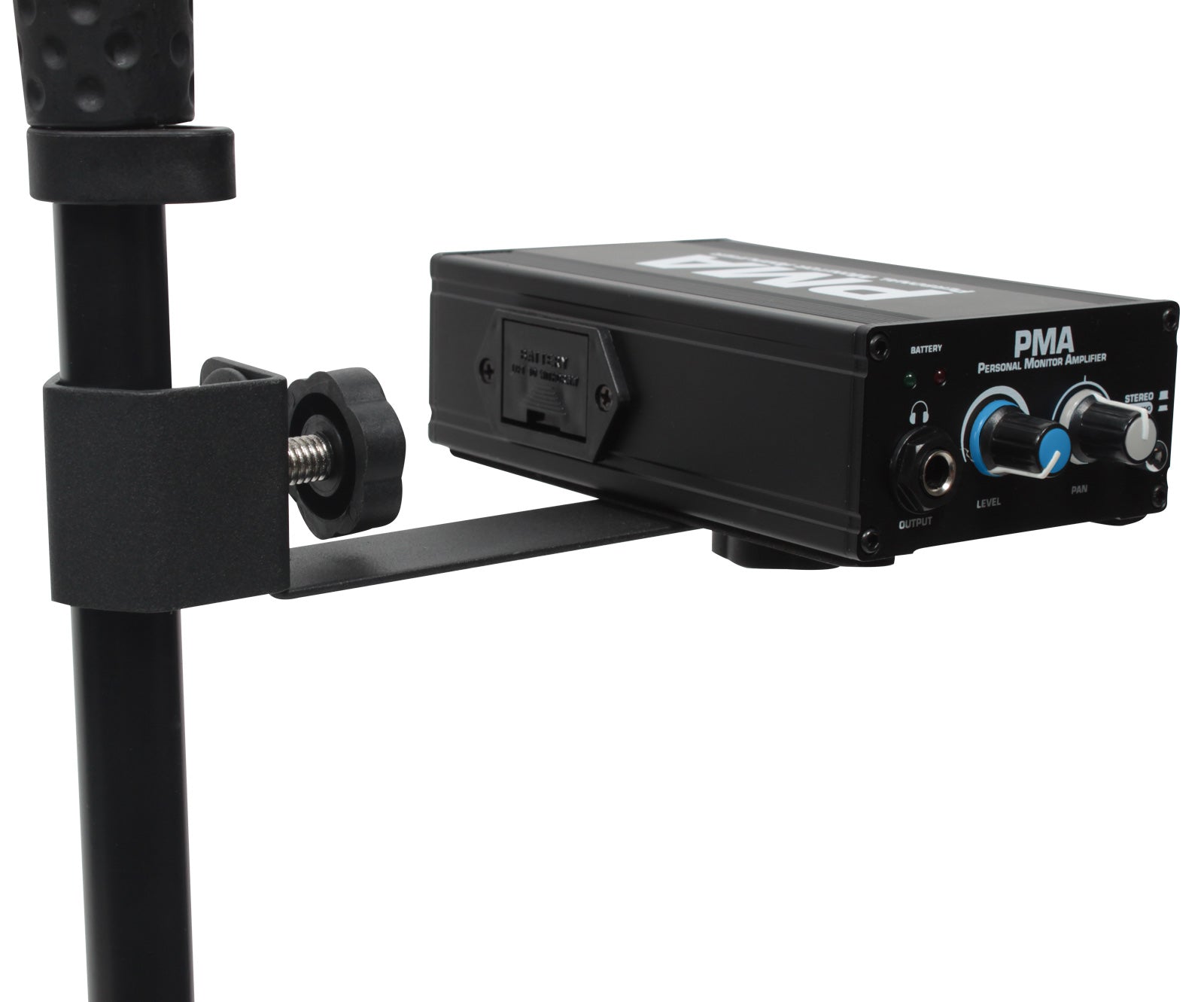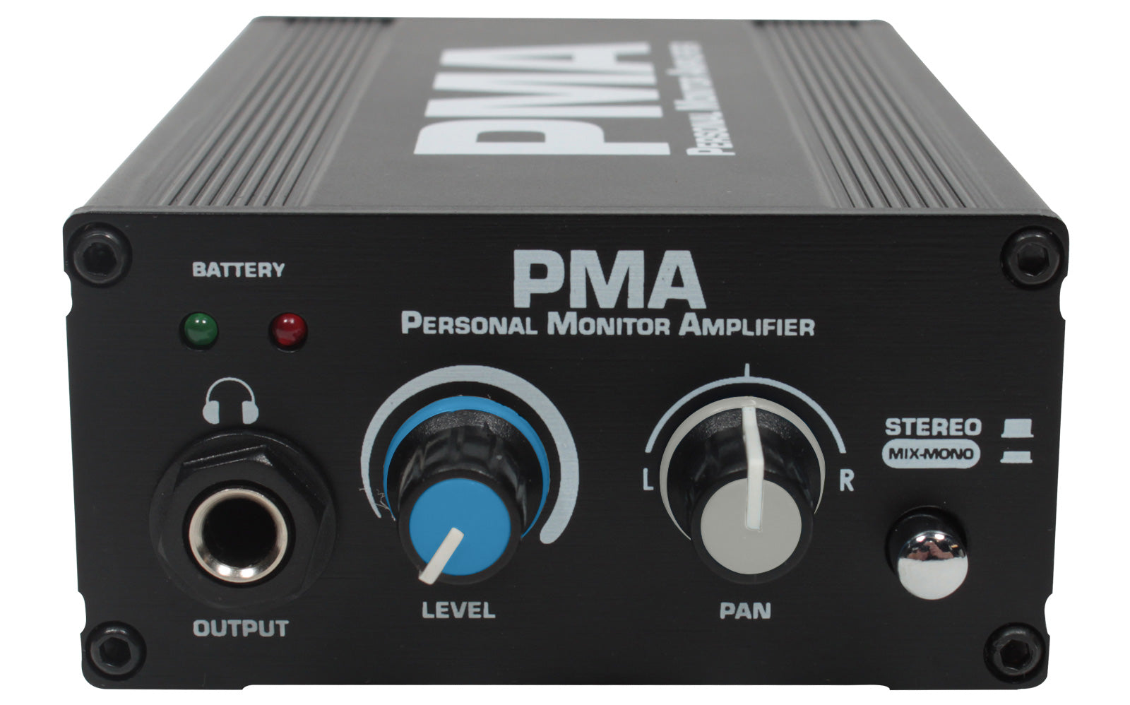The Elite Core PMA is a high-powered stereo or mix-mono personal monitor headphone amp designed to provide loud and clear monitoring through headphones or earphones. Signals from AUX outs are connected to the inputs of the PMA via combo XLR/TRS jacks. Headphones or earphones are powered by a strong 50mW per channel amplifier. The PMA can be conveniently mounted onto standard mic stand threads. Powered by the included 9V adapter, or by a 9V battery.