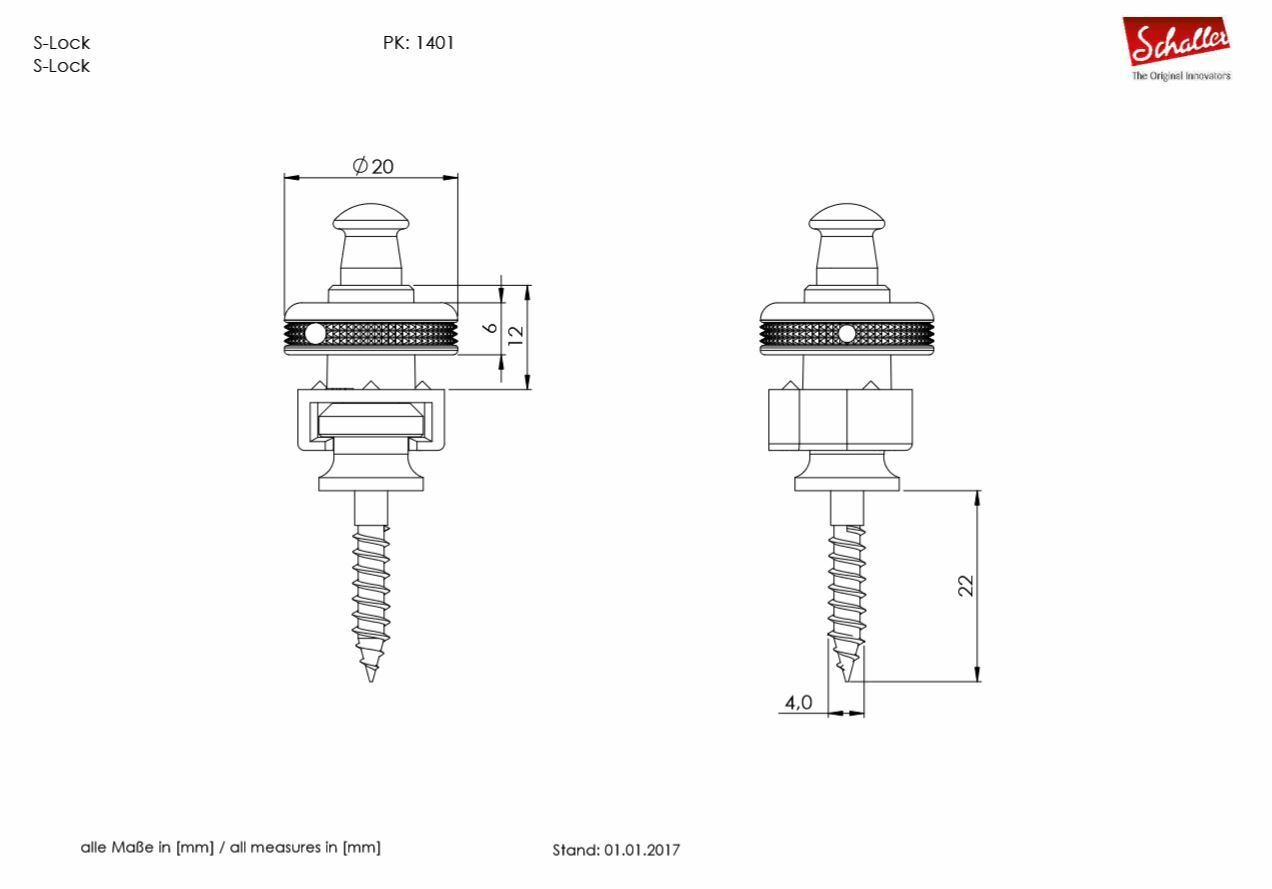 In 1981, Schaller developed and got the patent for a totally new category of product which revolutionized the connection between guitar and strap. With its unique design and functionality, Schaller has been setting the standard in strap locks for decades protecting your beloved instruments. In 2018, Schaller paves the way for the next generation of revolutionary strap locks with the new S-Locks, These new revolutionary S-Locks are silent (no more 'rattle'). They feature one-piece hardened steel strap buttons, aesthetic design, perfect handling, an elegant Lock-Wheel and a significant improvement in functionality and security.