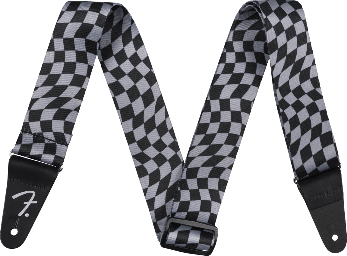 Genuine Fender Wavy Checkerboard Polyester Guitar Strap, Gray