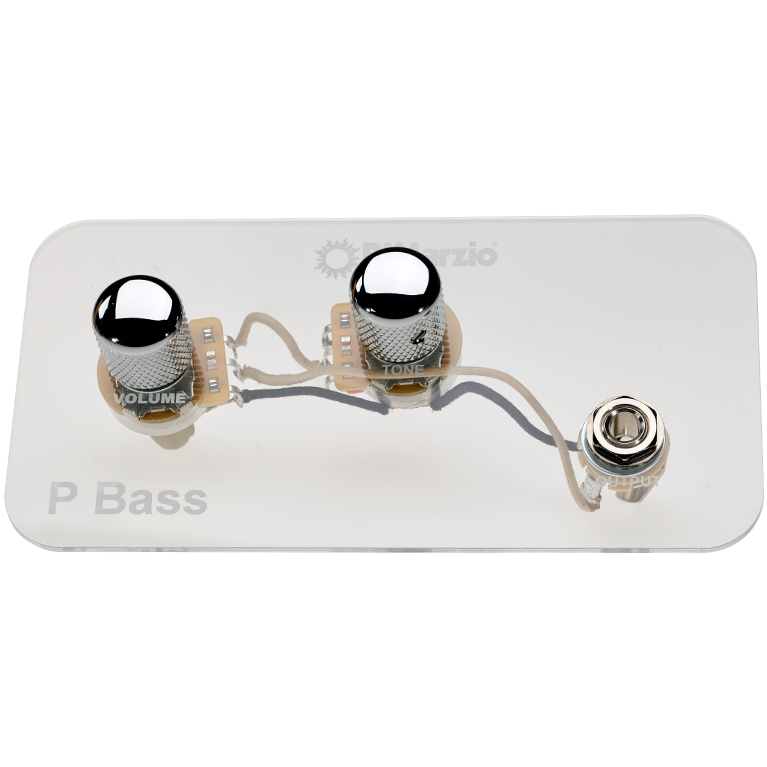 The heart of DiMarzio’s drop-in prewired P Bass harness is the combined use of our custom 500K volume and 250K tone pots. Introduced over 45 years ago, we used a 10-step rotary switch to create a taper that works with DiMarzio’s high impedance pickups. It’s neither a linear nor audio taper pot -- it's DiMarzio's custom taper.