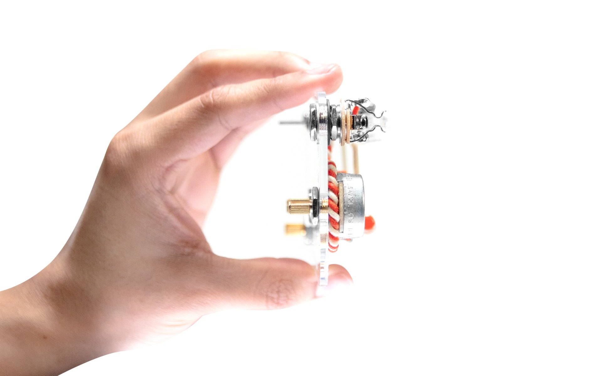 920D Custom 450G Series Potentiometers920D Custom potentiometers are used in this build. Our pots are manufactured by CTS to our exact specifications and are metered for accuracy before being used in any 920D Custom gear. We specify a 10% audio taper, accompanied with a low rotational torque rating of 0.50-2.00 in.oz (compared to the industry standard 0.75-6.00 in.oz rating) to provide a buttery knob sweep. We hold potentiometer tolerances to ±10%. The industry standard is ±20%. Tightening potentiometer tolerances will help you accurately shape your tone. |