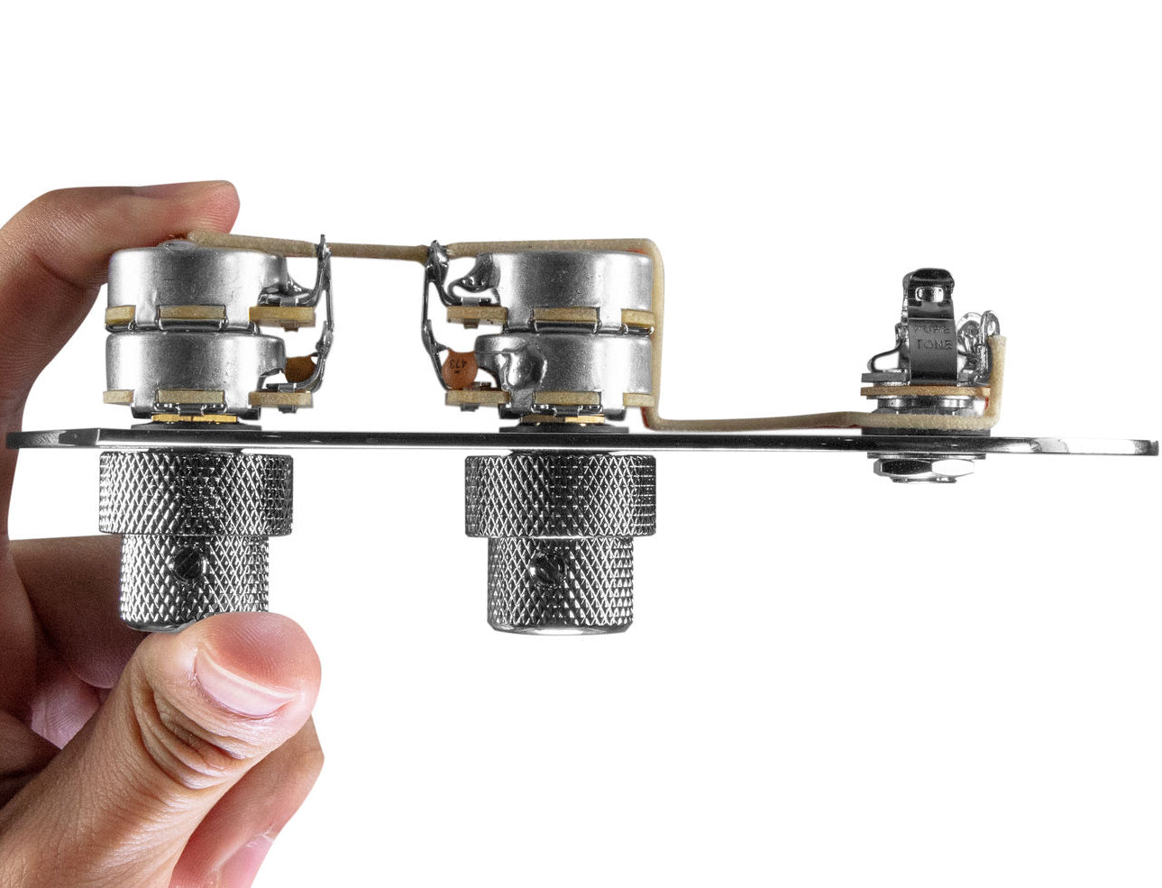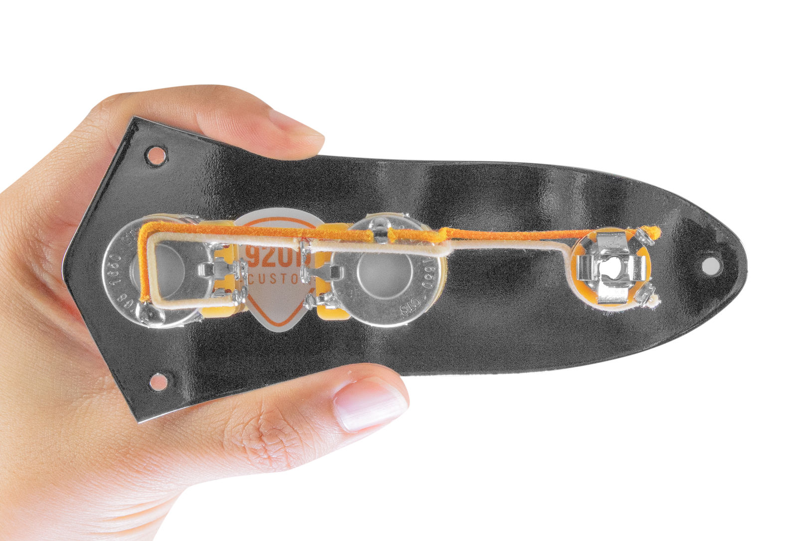 This 920D Custom Dual Pickup Bass Control Plate is far from stock. This pre-wired, drop-in piece is built with premium components and will drastically clean up your tone. Each pickup has a separate volume and tone control. If you need to improve your tone shaping on your bass, then this control plate is perfect for you.