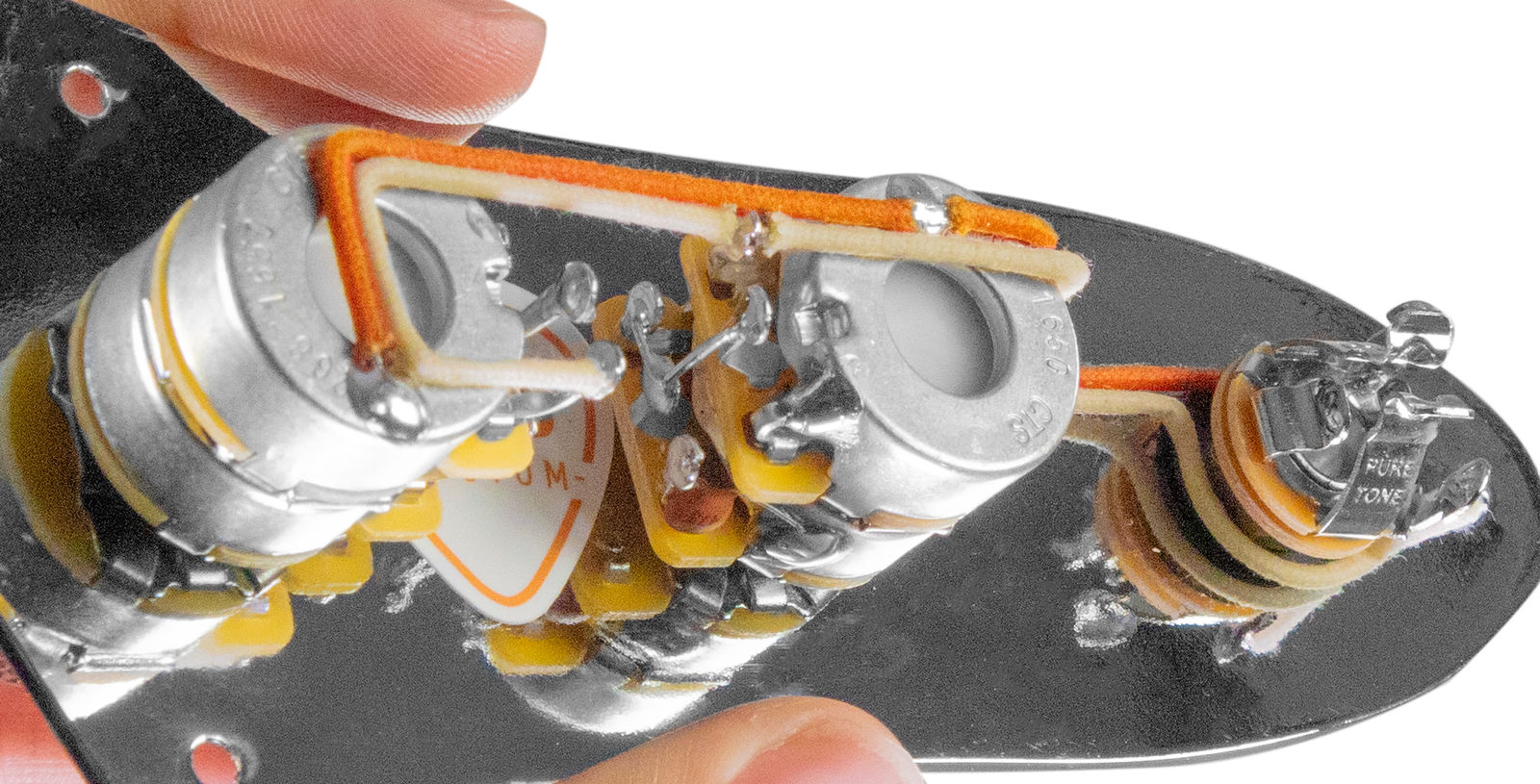 920D Custom Signature WiringAll 920D Custom products are highlighted with our signature orange wire. Gavitt Wire, a leading producer of premium guitar wire, has agreed to custom manufacture our signature cloth covered pushback wire, and we believe it is the perfect choice for hotrodding your guitar. The wire is built with an outer waxed cotton layer and an inner Celanese braid that provides impressive ruggedness while still maintaining a 22 gauge thickness. Limiting the amount of wire on each build compliments your choice of pickups by creating the perfect balance between capacitance and resistance. |
