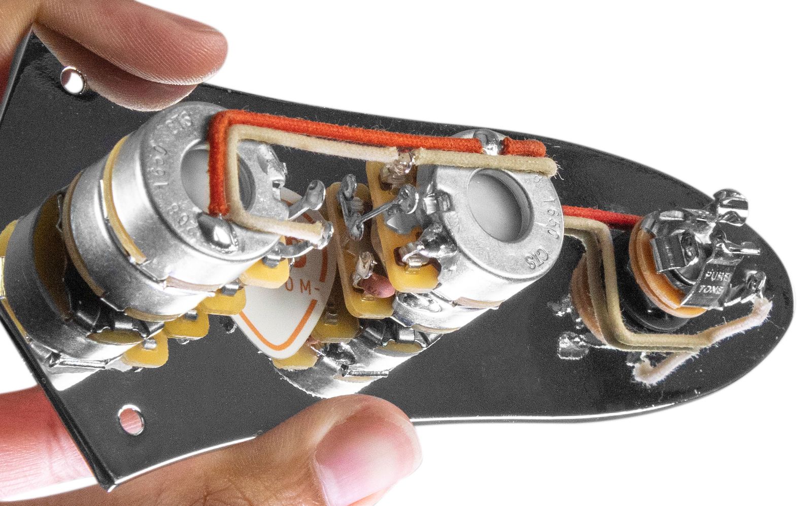 920D Custom Signature WiringAll 920D Custom products are highlighted with our signature orange wire. Gavitt Wire, a leading producer of premium guitar wire, has agreed to custom manufacture our signature cloth covered pushback wire, and we believe it is the perfect choice for hotrodding your guitar. The wire is built with an outer waxed cotton layer and an inner Celanese braid that provides impressive ruggedness while still maintaining a 22 gauge thickness. Limiting the amount of wire on each build compliments your choice of pickups by creating the perfect balance between capacitance and resistance. |