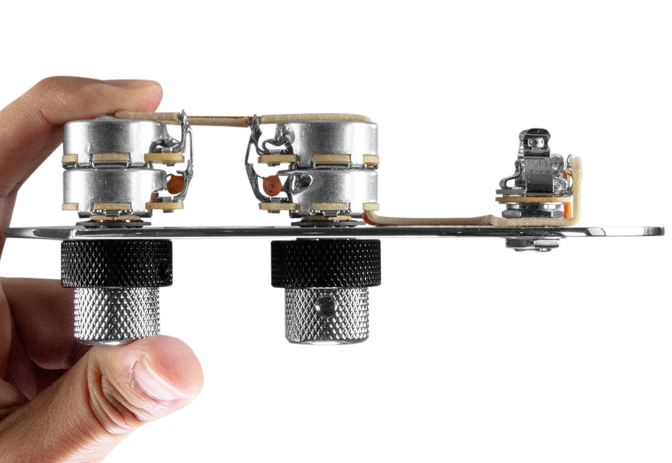 This 920D Custom Bass Control Plate is far from stock. This pre-wired, drop-in piece is built with premium components and will drastically clean up your tone. Each pickup has a separate volume and tone control. If you need to improve your tone shaping on your bass, then this control plate is perfect for you.