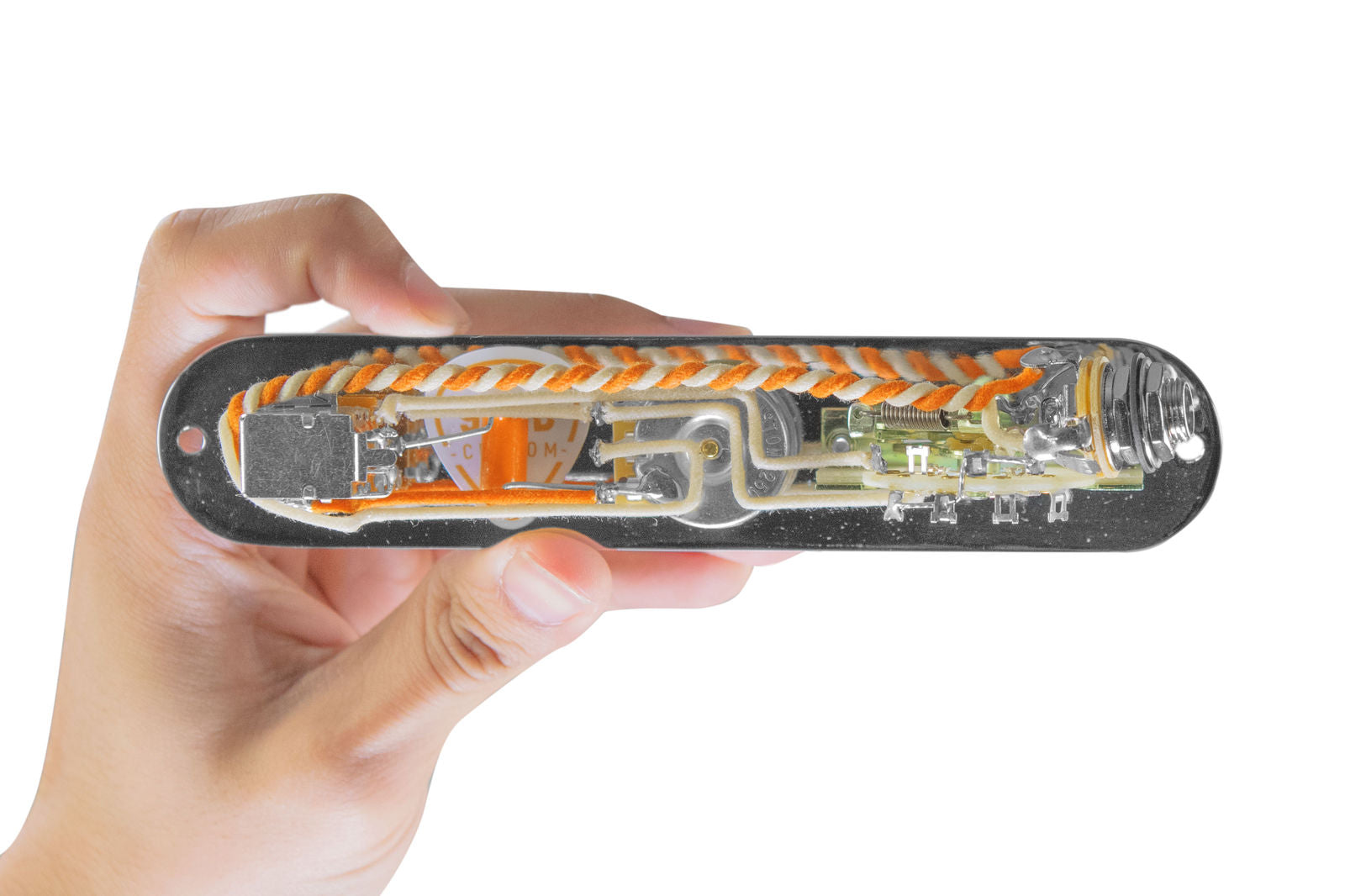 920D Custom Signature WiringAll 920D Custom products are highlighted with our signature orange wire. Gavitt Wire, a leading producer of premium guitar wire, has agreed to custom manufacture our signature cloth covered pushback wire, and we believe it is the perfect choice for hotrodding your guitar. The wire is built with an outer waxed cotton layer and an inner Celanese braid that provides impressive ruggedness while still maintaining a 22 gauge thickness. Limiting the amount of wire on each build compliments your choice of pickups by creating the perfect balance between capacitance and resistance. |