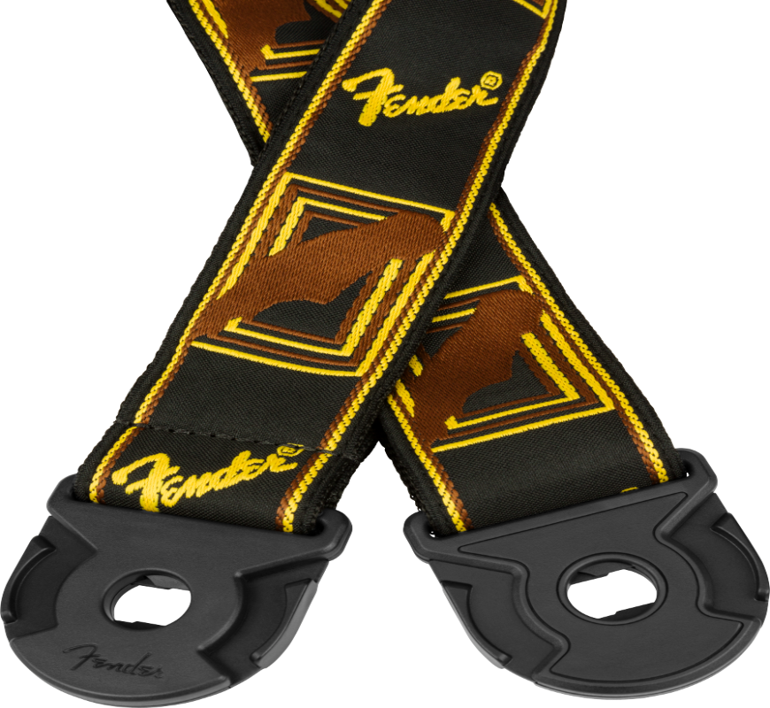 Fender QUICK GRIP Locking End Guitar Strap, Black/Yellow/Brown, 2" Wide