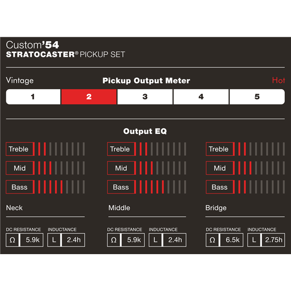 Surf's up! If you're looking for clean, edgy Strat tone that cuts through to the front of the band, then you need the Custom '54 Strat pickups. This augmented set of vintage style Strat pickups feature staggered, hand beveled, Alnico 5 magnets and Formvar magnet wire wound for classic bell tones, and clear harmonic enhancement. The bridge pickup is calibrated for increased, balanced output. OEM on the Custom Shop Dick Dale and American Classic Stratocasters®. Available in white only. Sold as a set of 3.
