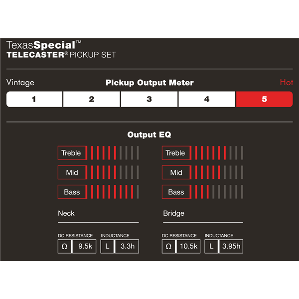 Here's something for you die hard Telecaster players. These overwound Tele pickups are constructed with Alnico 5 magnets and enamel coated magnet wire. The bridge pickup features height staggered magnets and a copper plated steel bottom plate for increased output, presence and midrange, while the nickel-silver cover on the neck pickup produces a clear warm tone that only a true Custom Shop Tele pickup can do. From Merle to Metal, the Texas Tele will demand their attention. OEM on the James Burton Standard, Merle Haggard Tribute and American Classic Telecasters. These pickups work great with our 4 way Tele Switch for parallel and series tones!