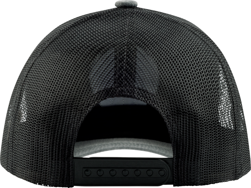 - 6 panel heather gray front, black mesh back