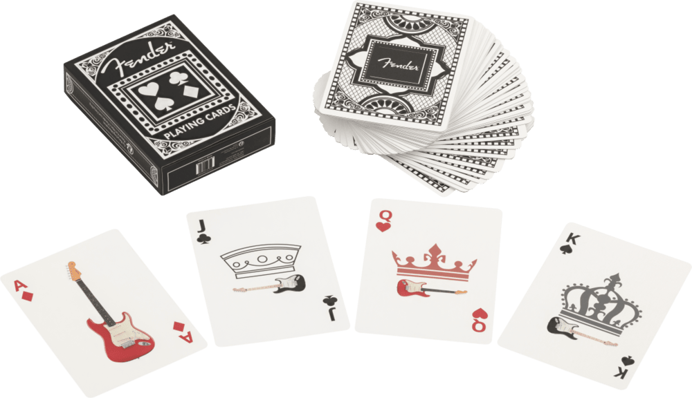 This specialty deck of cards designed with the iconic Fender® Stratocaster® will be the hit of your next game night. Featuring custom artwork that pays homage to Fender's most famous guitar. The deck is adorned with Fender's celebrated logo, along with imagery of our iconic instrument the Stratocaster®. Fender’s card deck will be popular among both musicians and collectors plus will serve as a unique gift or collectible for anyone with an interest in Fender® guitars. The playing cards themselves are made with high-quality materials to ensure they handle well during card games or magic tricks.