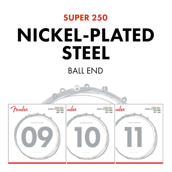Fender super 250’s are an excellent choice for rockand other styles of music where the guitar needs tocut through.fender super 250’s are installed at the factoryon all non-tremelo fender electric guitars asoriginal equipment.