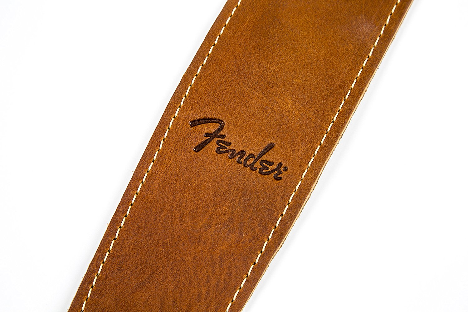 Genuine Fender 2.5" Wide Ball Glove Leather Adjustable Guitar Strap - Brown