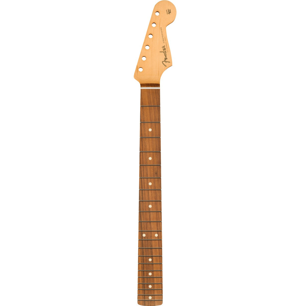 Crafted at our Ensenada, Mexico, manufacturing facility, this genuine Fender® Stratocaster® guitar maple neck features a comfortable "C" profile and 7.25"-radius pau ferro fingerboard with 21 vintage-style frets and vintage-style heel-adjust truss rod.