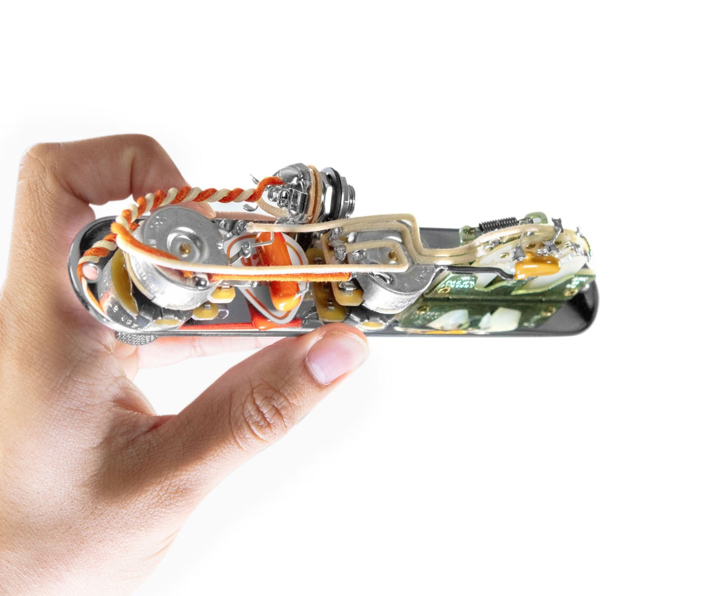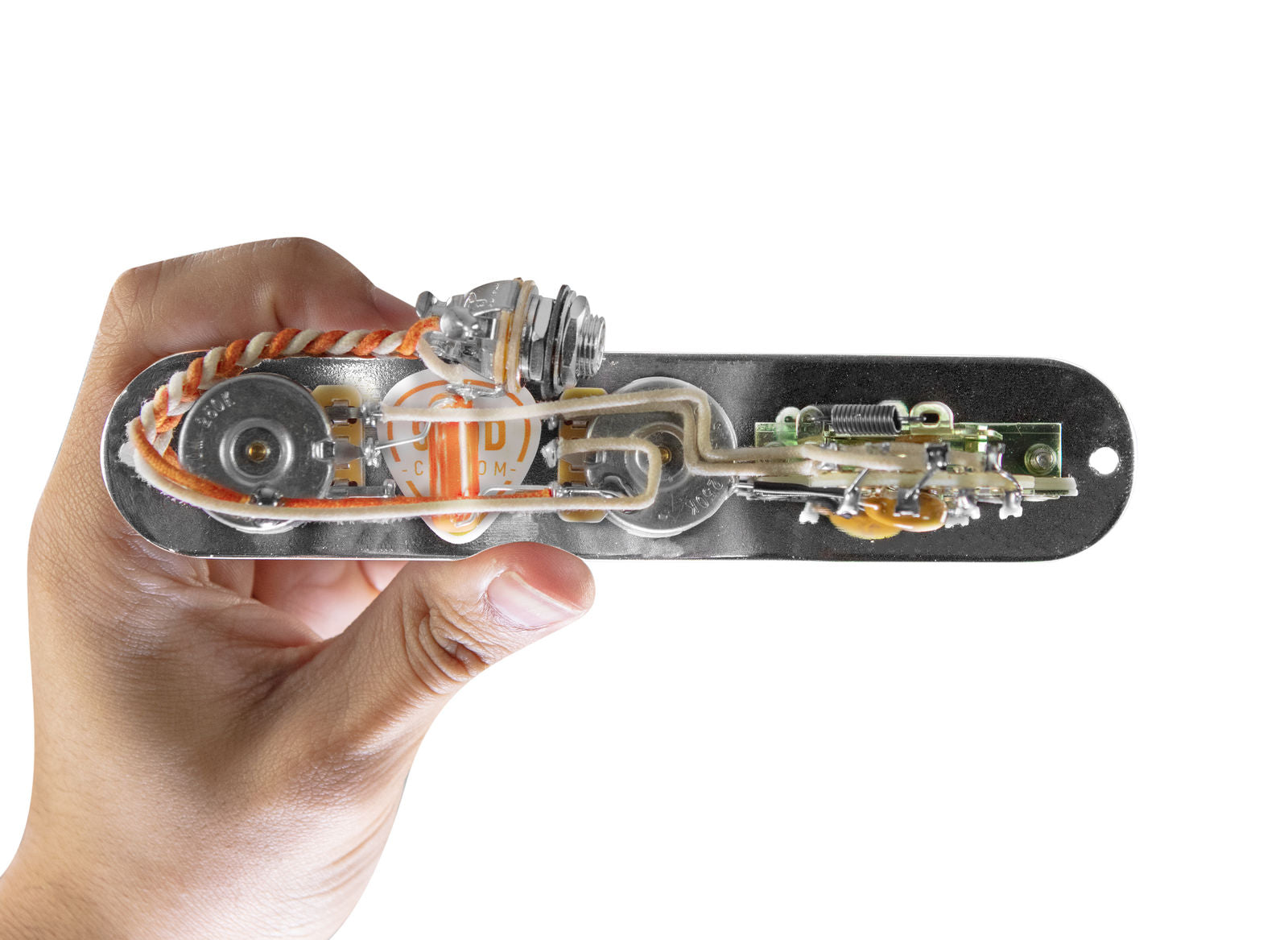 Any 920D Custom 3-Way Control Plate is far from stock. This pre-wired, drop-in piece is based on the classic single bridge pickup T style wiring mod. Our control plate is the ultimate upgrade to polish and improve your tone.