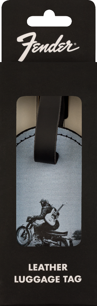 Genuine Fender Guitars Vintage Ad Luggage/Suitcase Tag, Motorcycle Rider