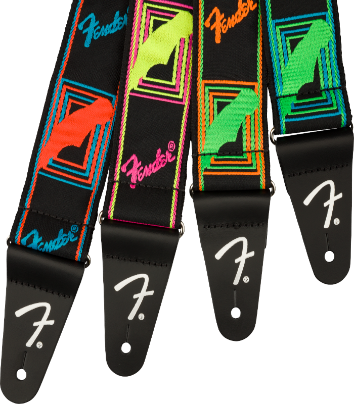 Genuine Fender Neon Monogrammed Guitar Strap, Green and Orange, 2" Wide