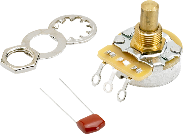 Fits most U.S.- and Mexico-made instruments requiring a 3/8" solid-shaft potentiometer. Takes set screw-mount control knob. Mounting hardware and .022mf 250V capacitor included.