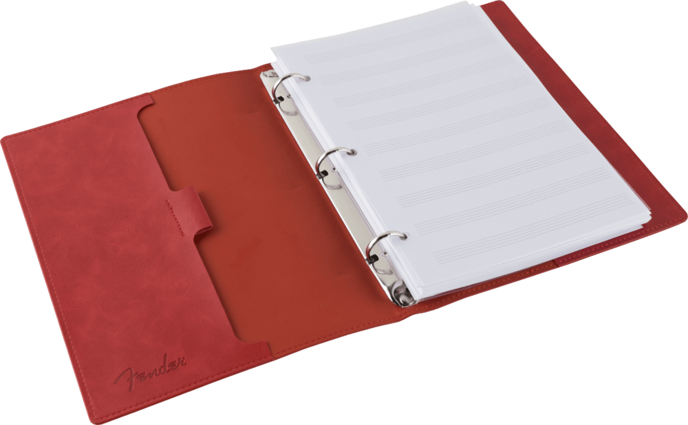 Crafted for musicians and creators, the Fender™ Vegan Leather Dakota Red Notebook blends style and function in a bold, iconic finish. The smooth vegan leather cover in Fender’s signature Dakota Red evokes vintage electric guitars, offering a vibrant pop of color with a refined, tactile feel. Embossed with the classic Fender® spaghetti logo, it’s a statement piece for any artist on the go. Inside, you'll find high-quality, acid-free pages designed specifically for music notation, with clear staff lines ideal for composing, arranging, or sketching out melodic ideas. There are also blank pages for all of you songwriters out there. Whether you're in the studio, on tour, or jotting down riffs at a café we have just the notebook for you!