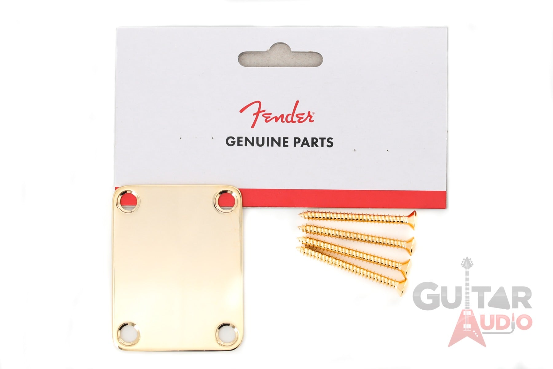 Genuine Fender Vintage Original Strat/Tele Plain 4-Bolt Gold Neck Plate w/Screws