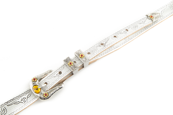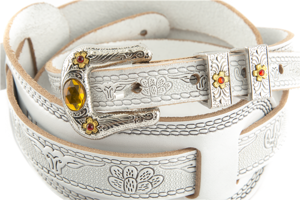 • Genuine Gretsch Vintage Tooled Leather Adjustable Guitar Strap, (White)