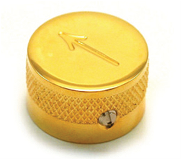 Set of 4. Fits USA solid shaft pots, set screws included. Arrow logo. Gold.