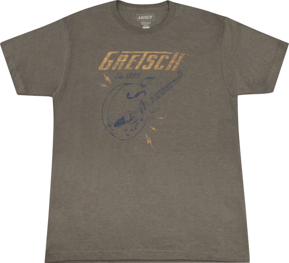 Gretsch Guitars Lighting Bolt Graphic T-Shirt, Brown, XXL, 2XL