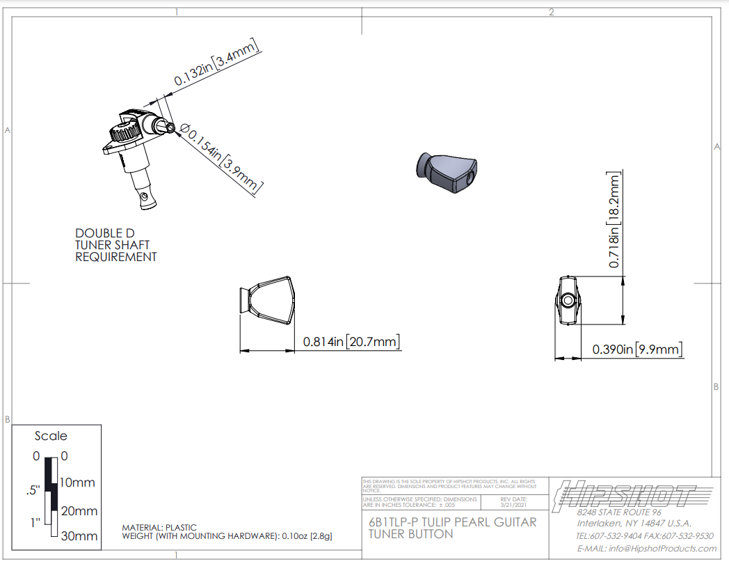 Hipshot (6) D04 Tulip Plastic Guitar Tuner Buttons w/ Screws, Pearl, 6B1TLP-P