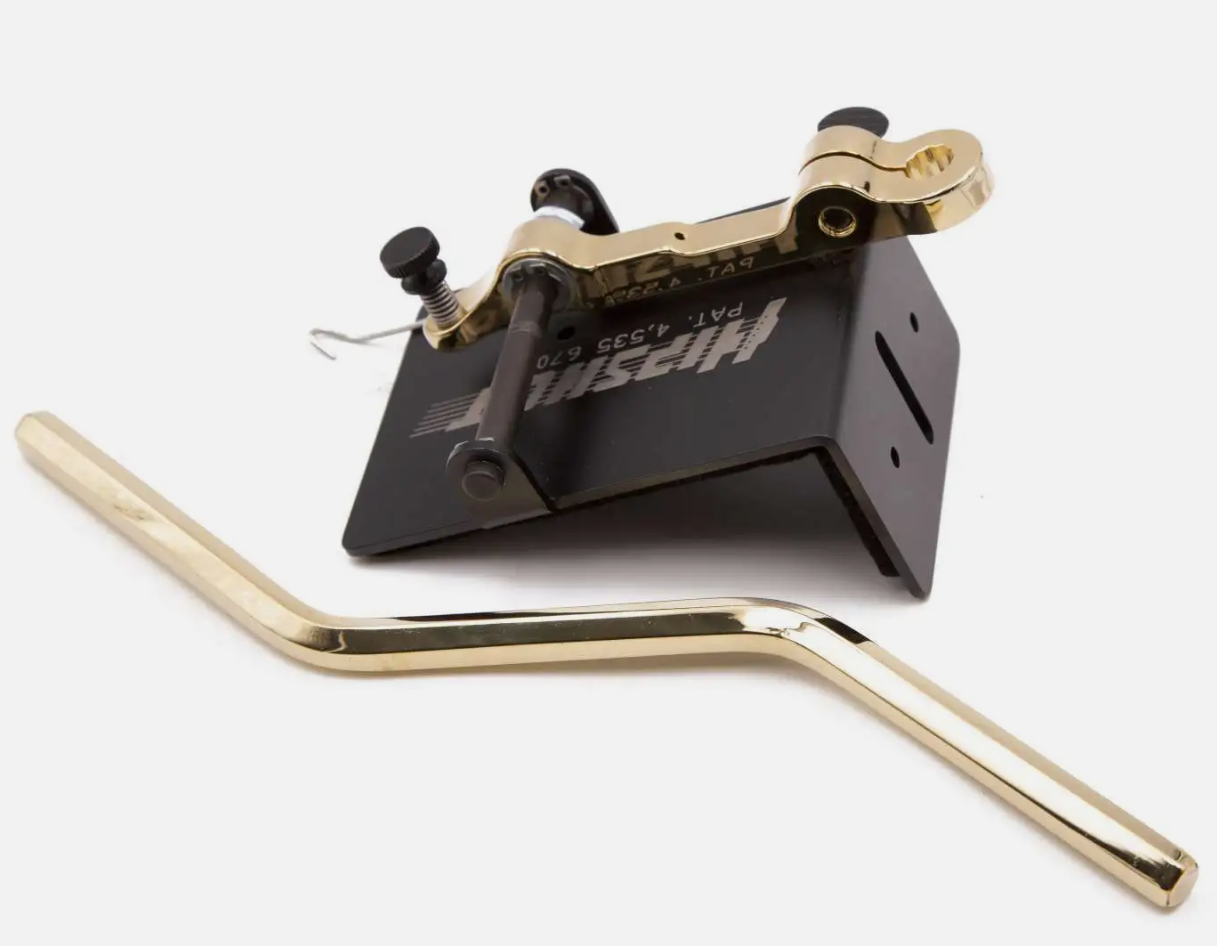 This is the legendary Hipshot B Bender. Unlike some other bending systems, the Hipshot bender does not require routing of the body of your guitar, making the installation very straightforward. Although designed originally for Telecaster style guitars, the system has been successfully installed on other models too.