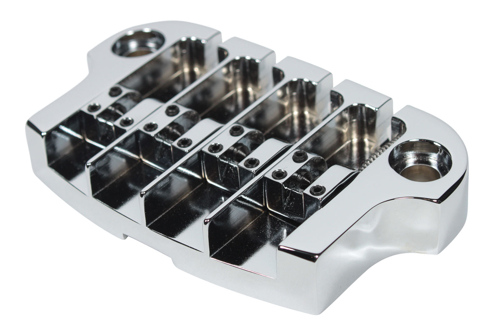 Breathe new life into your Gibson bass with the new completely redesigned Hipshot SuperTone Bass Bridge. A direct replacement unit for your Gibson 3 point bass bridge that uses your existing hole pattern. Machined out of solid aircraft quantity aluminum, the Hipshot SuperTone features complete adjustability that is easy to use: precise intonation, independent string height,string thru or top load option, and even side- to- side string spacing adjustment. Most important of all, TONE, PUNCH and SUSTAIN that will knock your socks off! Unleash the tone that is trapped in your bass with the new Hipshot Supertone Bass Bridge! *To achieve maximum tonal transference, the SuperTone is solidly fastened to your instrument. A very slight shadow of the bridge footprint may result.