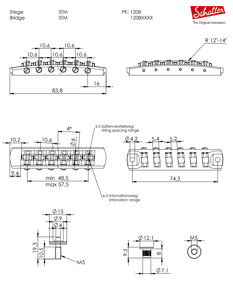 - String radius 12”-14” (usable for fretboard radius 10”-16”)