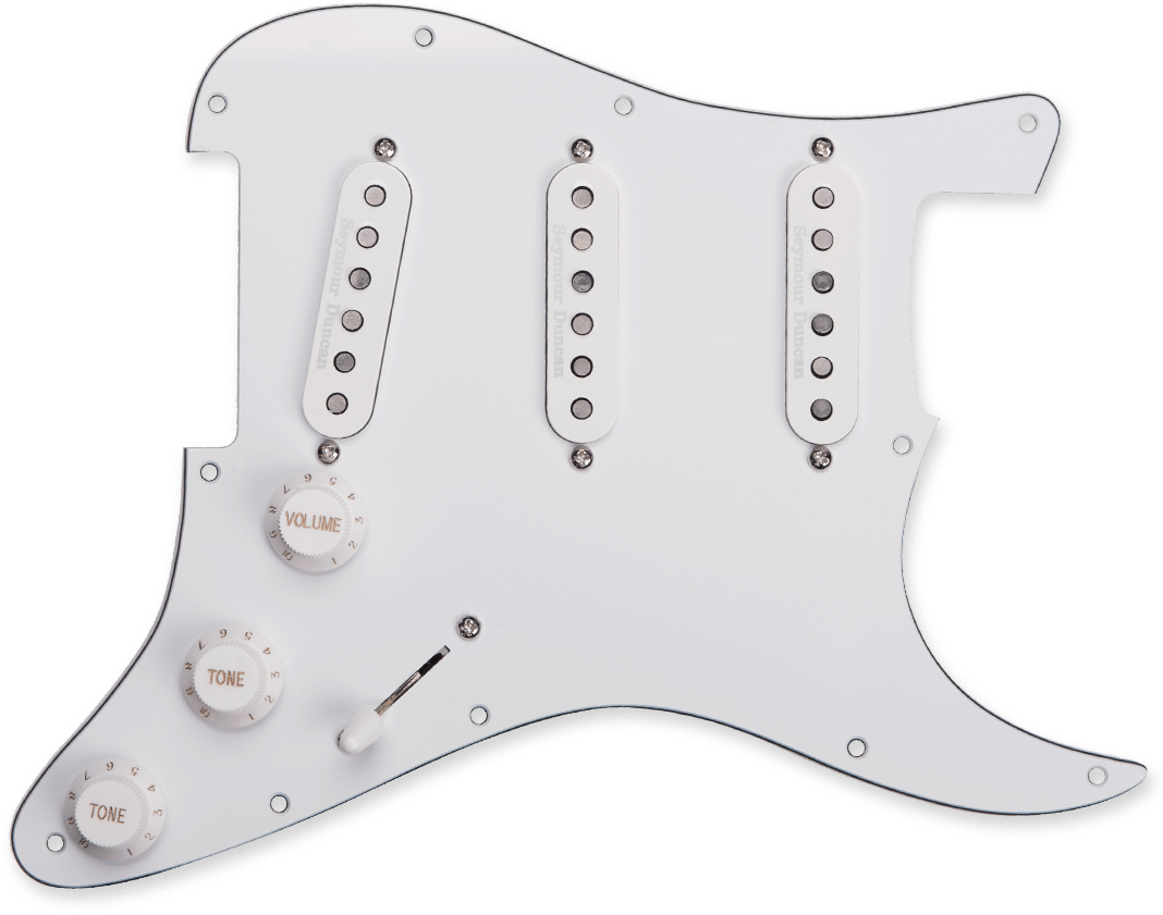 Overall, you get a truly versatile, noiseless setup that can be dropped into your Strat. Any future pickup changes you decide to make will be a snap because this pickguard comes equipped with a Liberator solderless system that makes swapping pickups fast and easy. There is also coil-splitting option that lets you choose between hum-cancelling Stack mode and traditional single-coil operation.