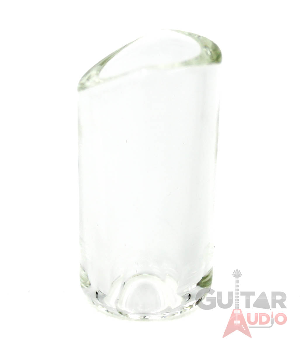 Moulded Glass Rock Slides are individually hand moulded by master lampworkers. These have all the same features as our brass Rock Slide® with the Knuckle Cut, Finger Rest and Tapered Interior. These fit almost exactly like their brass counterpart but are slightly longer. The main difference being that they are much lighter & faster so you can really cook with these on an electric guitar. Because of our unique tapered interior design they do have enough mass to light up your acoustic.